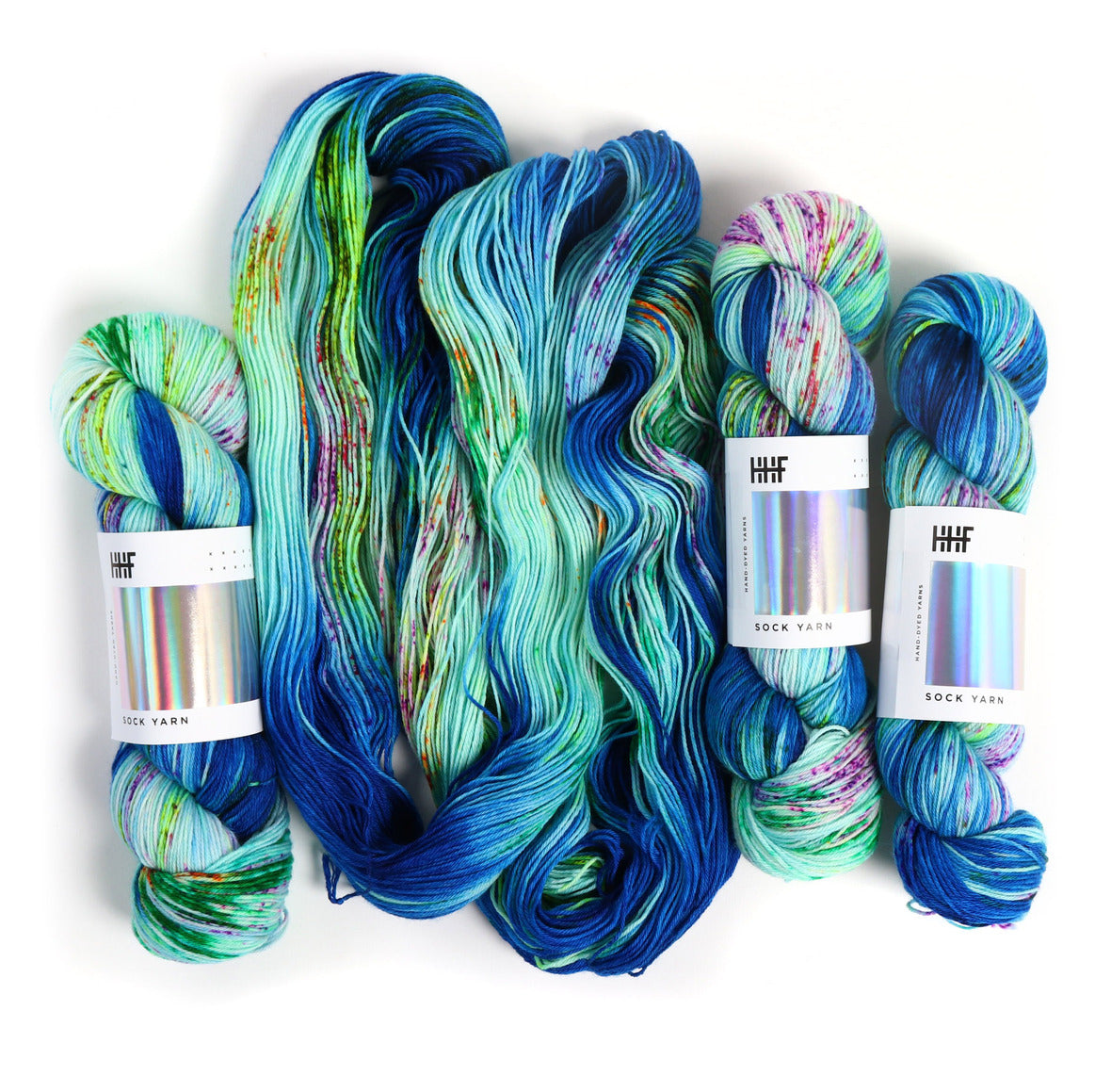 DK weight yarn, 100% Merino wool, superwash. Smooth, soft, non-scratchy yarn with a tighter twist and a round profile. Great all purpose workhorse yarn, next to the skin soft. Wonderful stitch definition. The ideal yarn sweaters, scarves, hats, anything you can think of! Sold in approx. 100g skeins/200m. Gentle machine wash, delicate cycle. DK weight