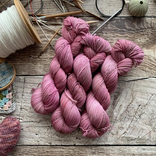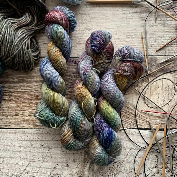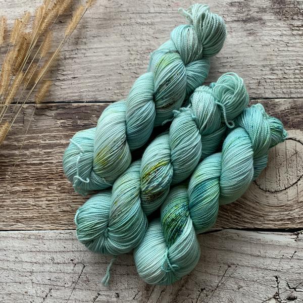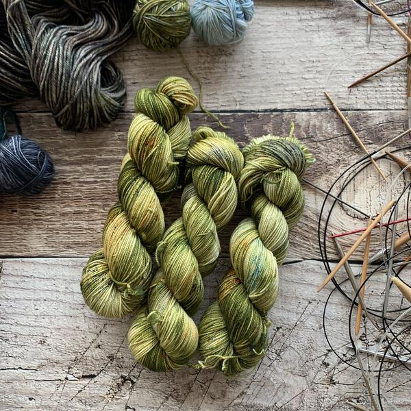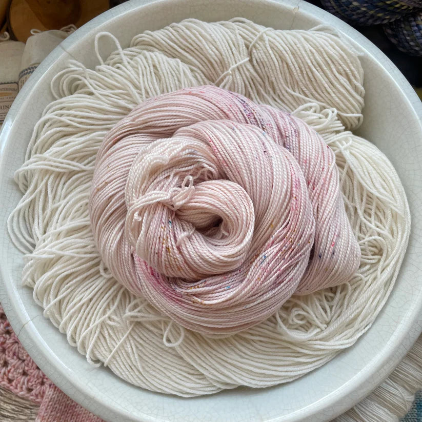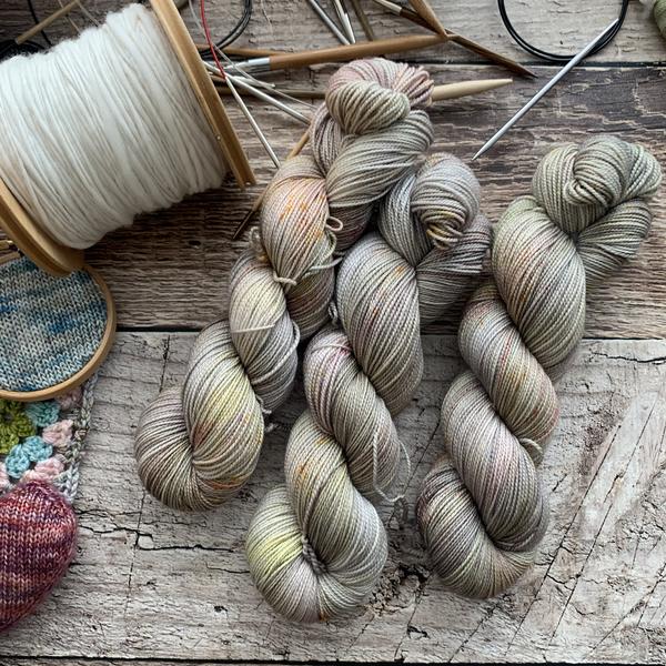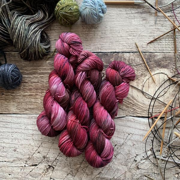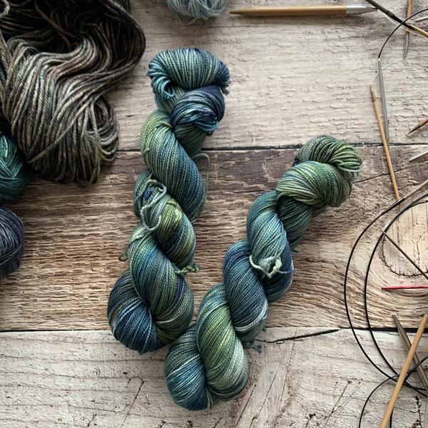 Nimble sock is a 19.5 mircon superwash merino wool 2 ply yarn with 15% nylon. It has that great bounce like my old Everyday Fingering base, but with the softness of my Plush collection!