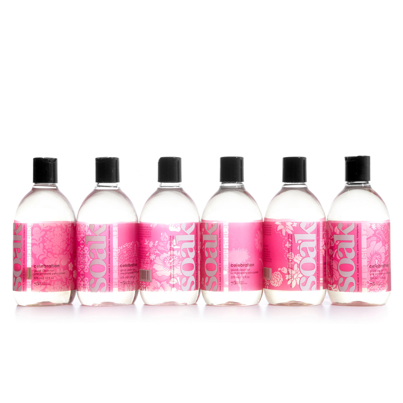 This wonderful fiber wash is gentle enough to leave in - no rinsing necessary! Biodegradable and phosphate-free, it's gentle on your fibers and hands. You will love the subtle scents and the feel of your handknits when they have been washed in Soak.